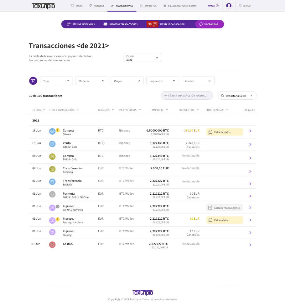 - Impuestos: si la operación es o no declarable en IRPF.